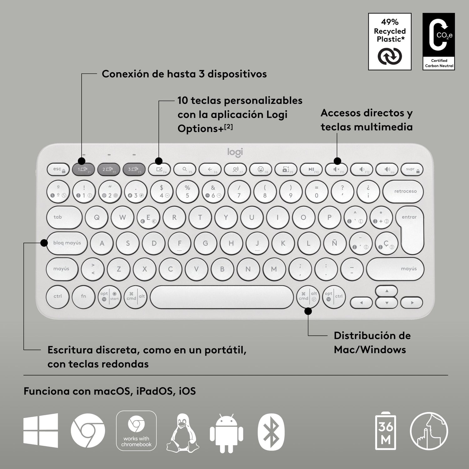 Teclado Logitech Pebble Keys 2 K380s Rf Wireless + Bluetooth Qwerty Blanco Español