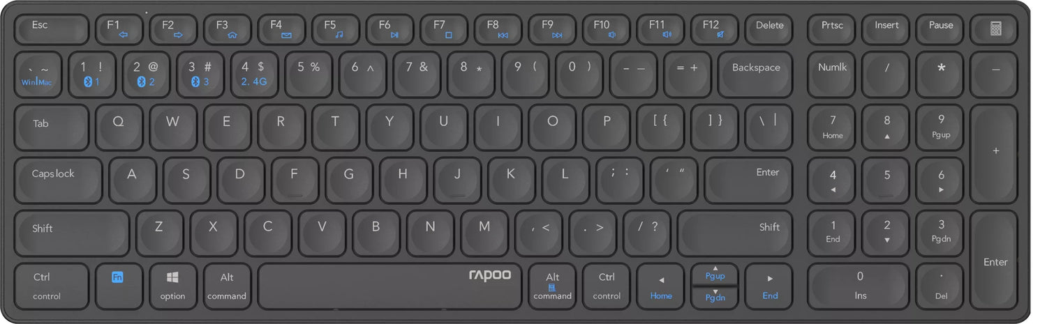 Rapoo 00215871, Completo (100%), Inalámbrico, RF Wireless + Bluetooth, QWERTY, Negro