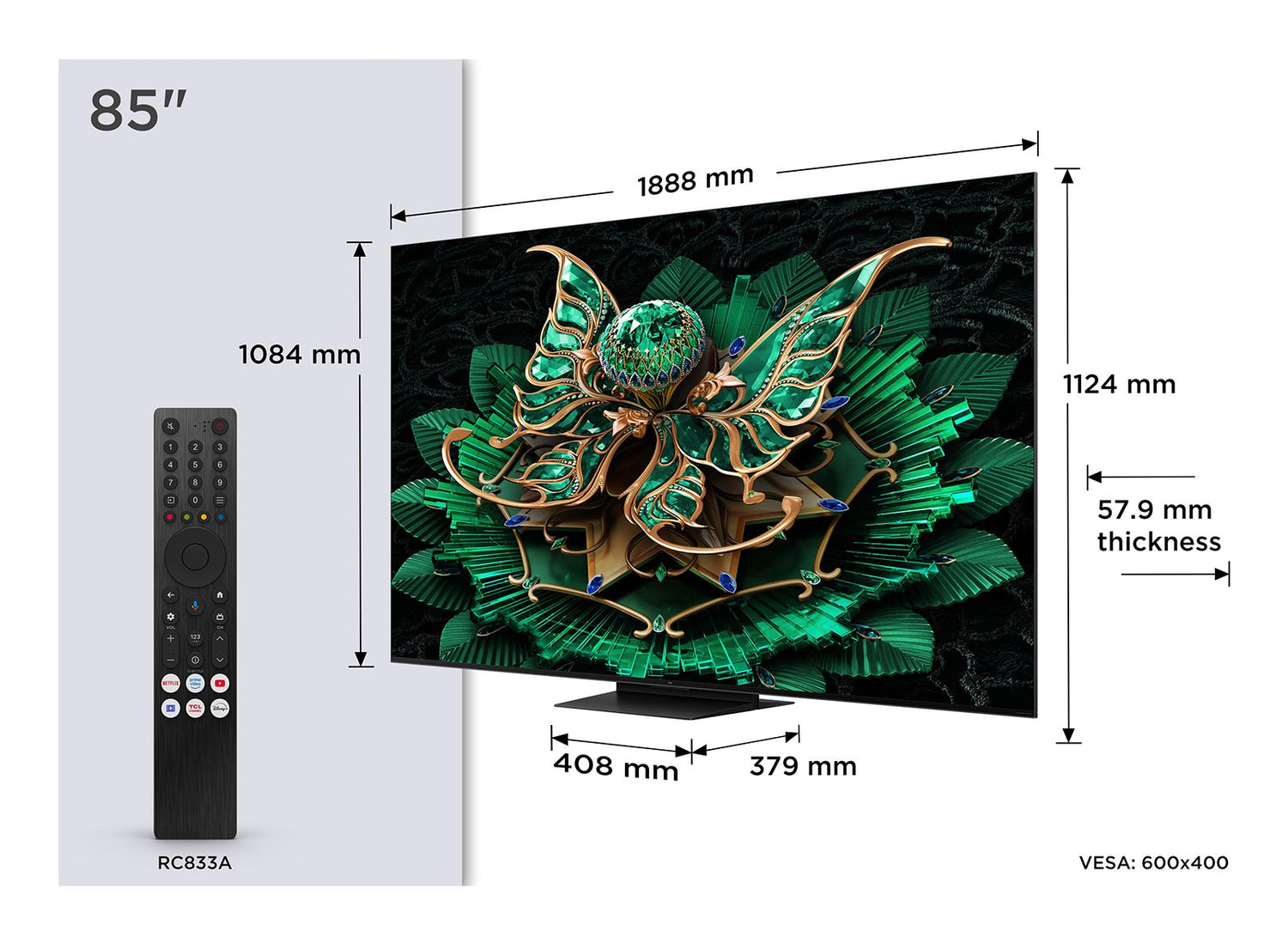 TCL 85C7K, 2,16 m (85"), 3840 x 2160 Pixeles, QD-Mini LED, Smart TV, Wifi, Metálico