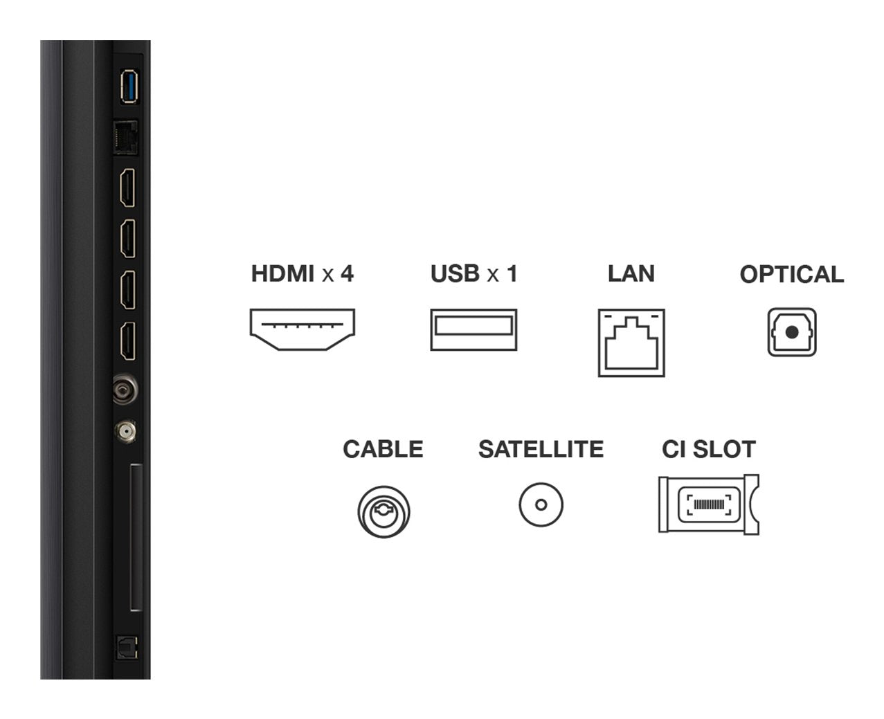 - Prestaciones de juego: Modo automático de baja latencia (ALLMˌ Auto Low Latency Mode), Game Master, Frecuencia de actualización variable (VRRˌ Variable Refresh Rate)