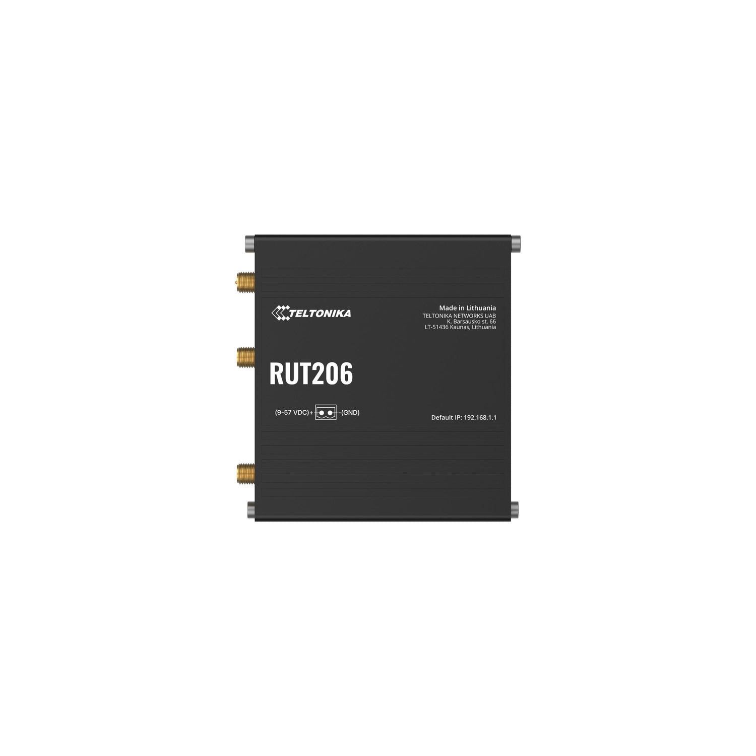 Teltonika RUT206 INDUSTRIAL. Tipo de conexión WAN: RJ-45. Banda Wi-Fi: Banda única (2,4 GHz), Estándar Wi-Fi: Wi-Fi 4 (802.11n), Tasa de transferencia de datos WLAN (máx.): 300 Mbit/s. Tipo de interfaz Ethernet LAN: Ethernet rápido, Ethernet LAN, velocidad de transferencia de datos: 10,100 Mbit/s, Tecnología de cableado: 10/100Base-T(X). Generación de red móvil: 4G. Tipo de producto: Rúter industrial, Color del producto: Negro, Material de la carcasa: Aluminio