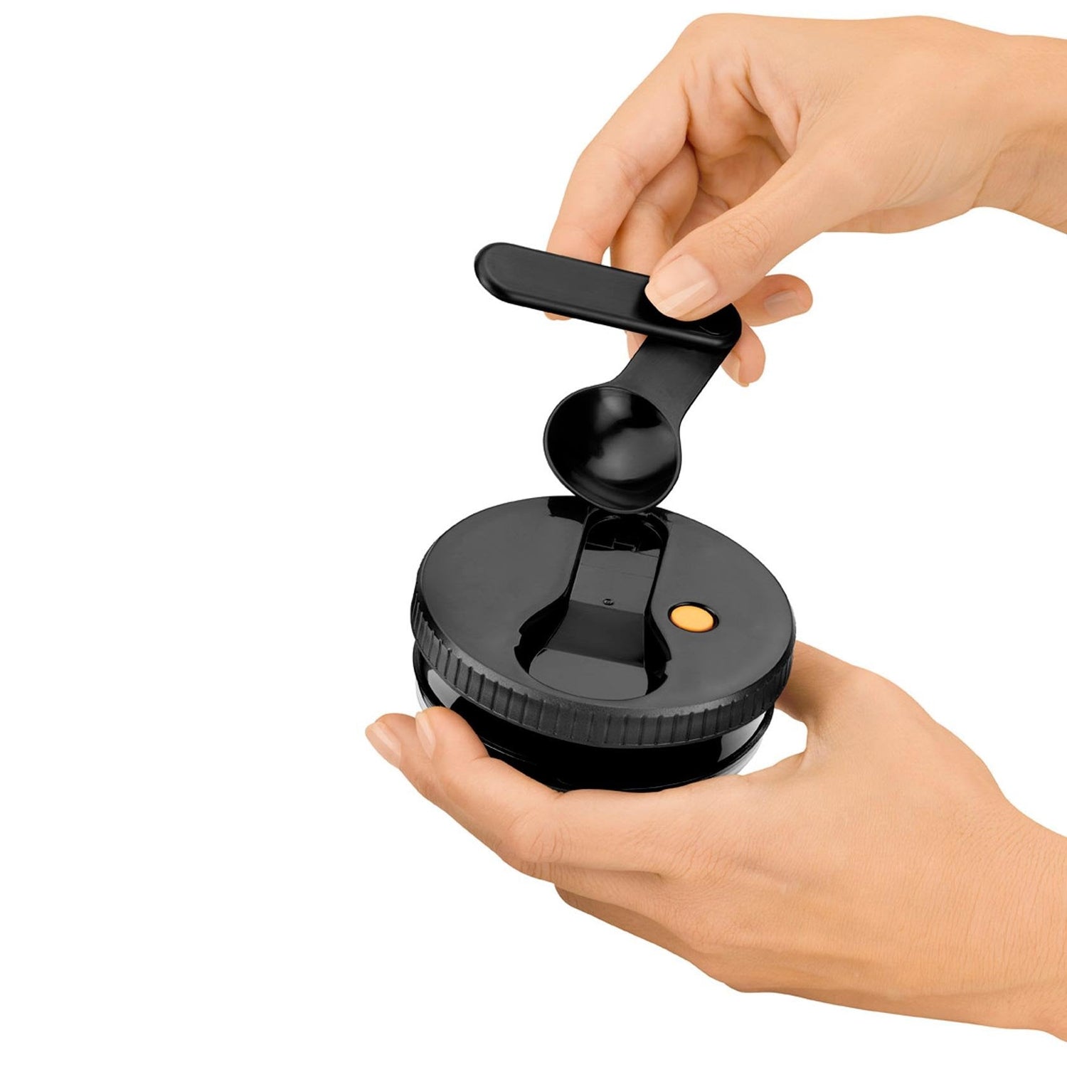 Su tapón interior es de rosca y proporciona un cierre hermético. Cuenta con un botón de despresurización que garantiza una apertura segura.