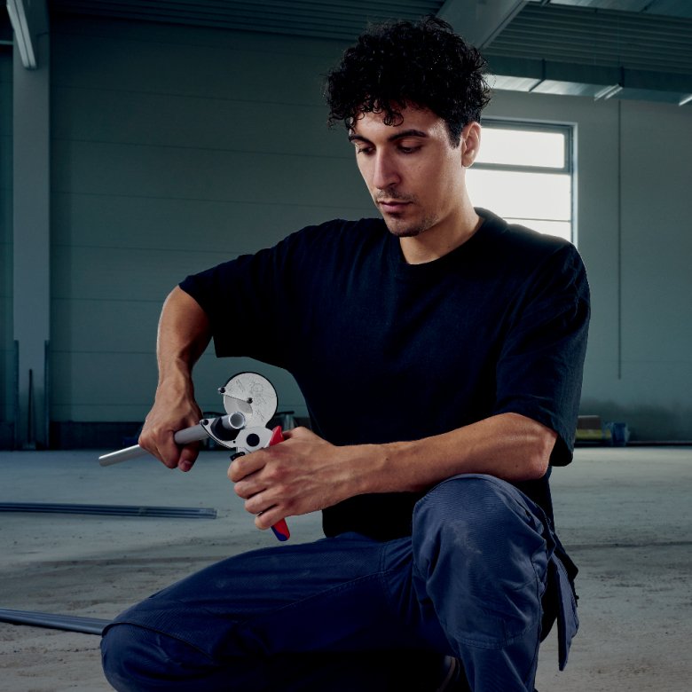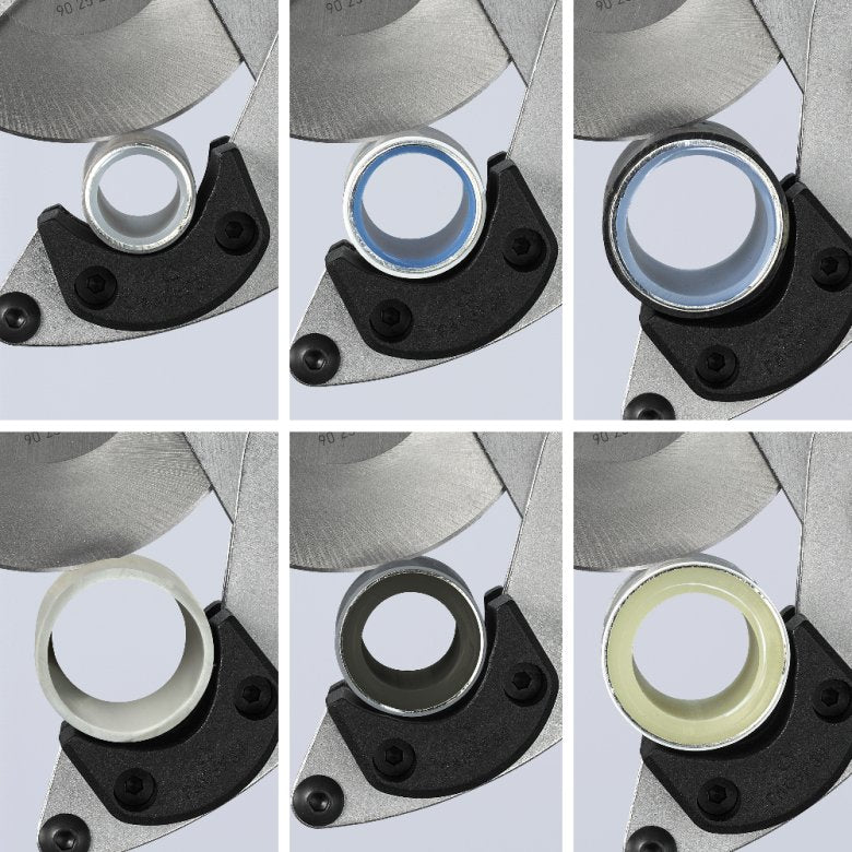 Knipex Rohrschneider. Tipo de producto: Tijeras para tubos, Adecuado para materiales: Plástico, Color del producto: Aluminio, Negro, Azul, Rojo. Longitud: 210 mm, Ancho: 81 mm, Peso: 391 g
