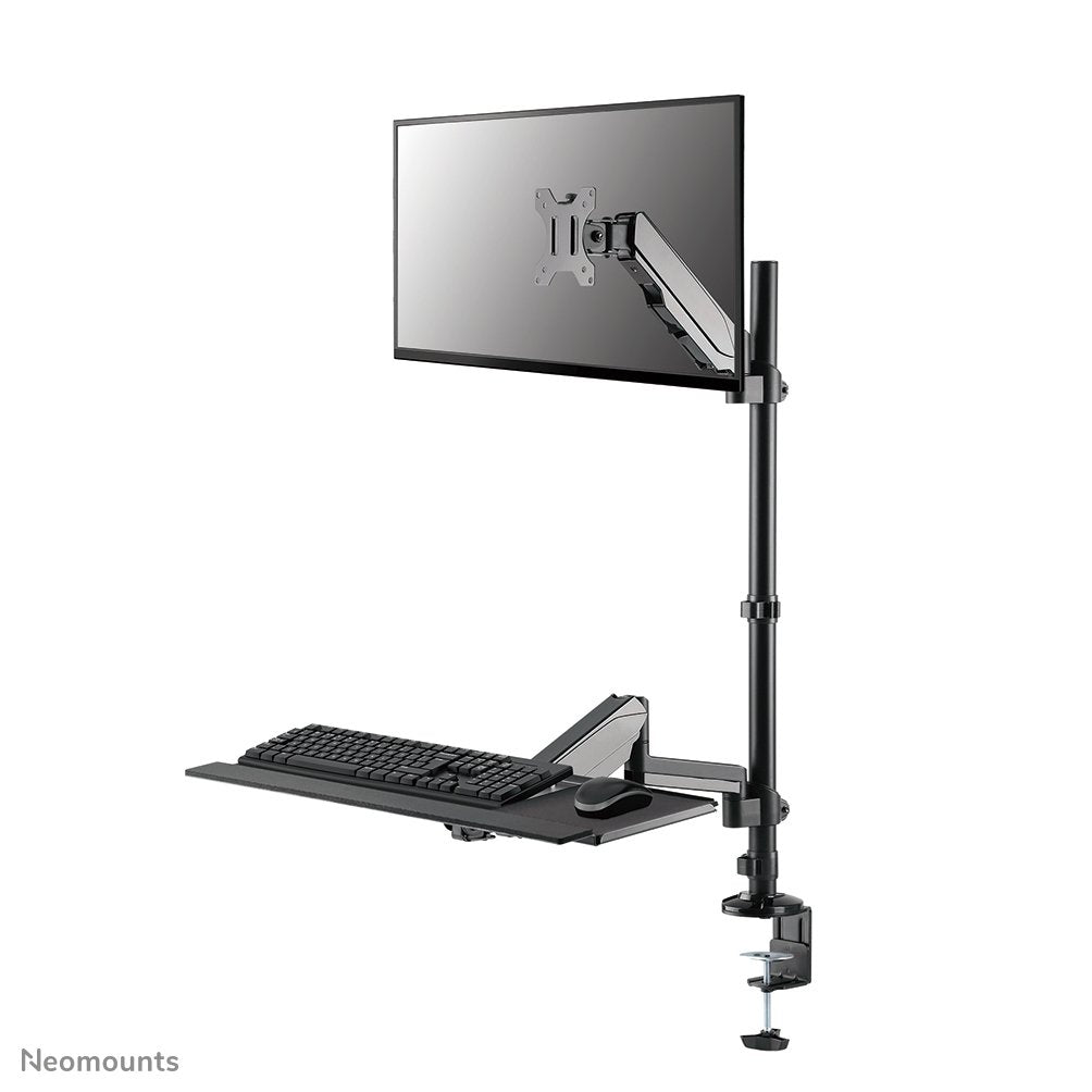 Neomounts DS90-325BL1 Soporte de sobremesa para puesto de trabajo de pie/sentado 17-32" - resorte de gas. Montaje: Pinza/Atornillado, Capacidad máxima de peso: 9 kg, Tamaño mínimo de pantalla: 43,2 cm (17"), Tamaño máximo de pantalla: 81,3 cm (32"), Compatibilidad con interfaz de montaje (min): 75 x 75 mm, Compatibilidad con interfaz de montaje (max): 100 x 100 mm. Ajustes de altura, Ángulo de giro (alcance): -90 - 90°, Ángulo de inclinación: -35 - 35°. Color del producto: Negro