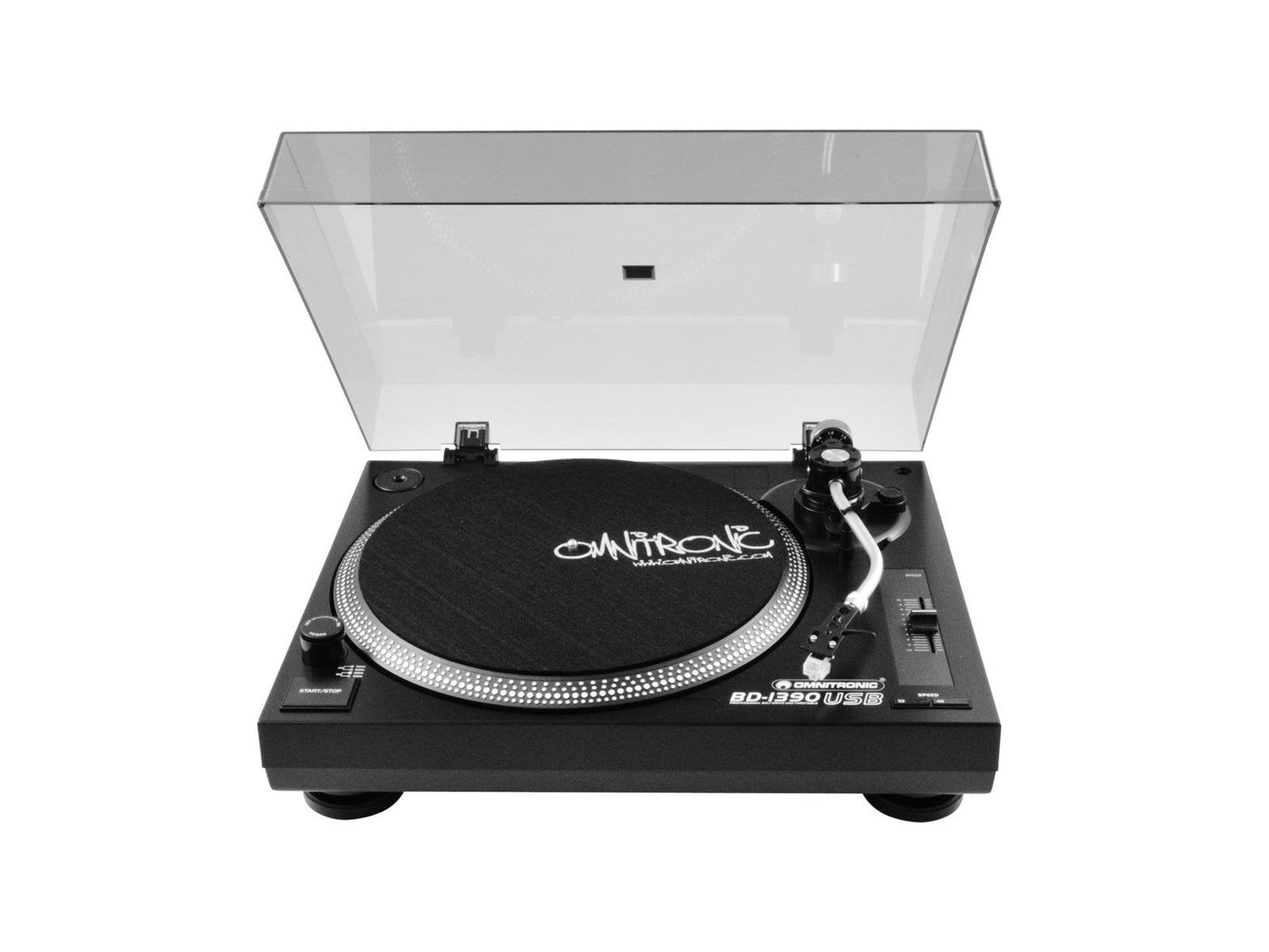 Omnitronic BD-1390. Tipo: Tocadiscos de tracción por correa portátil, Velocidades nominales: 33 1/3,45 RPM, Rango del control de velocidades de giro del plato: -10 - 10%. Forma: Brazo con forma de S, Longitud del brazo: 22 cm, Overhang (distancia entre la punta de la aguja y el centro del eje): 1 cm. Color del producto: Negro. Voltaje de entrada AC: 115/230 V, Frecuencia de entrada AC: 50 - 60 Hz, Consumo energético: 8 W. Sistema operativo Windows soportado: Windows 10, Windows 7, Windows 8, Windows Vista, Windows XP