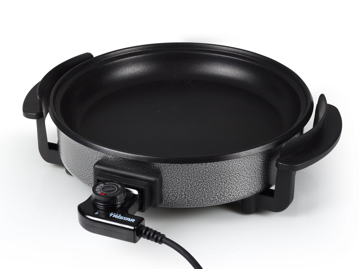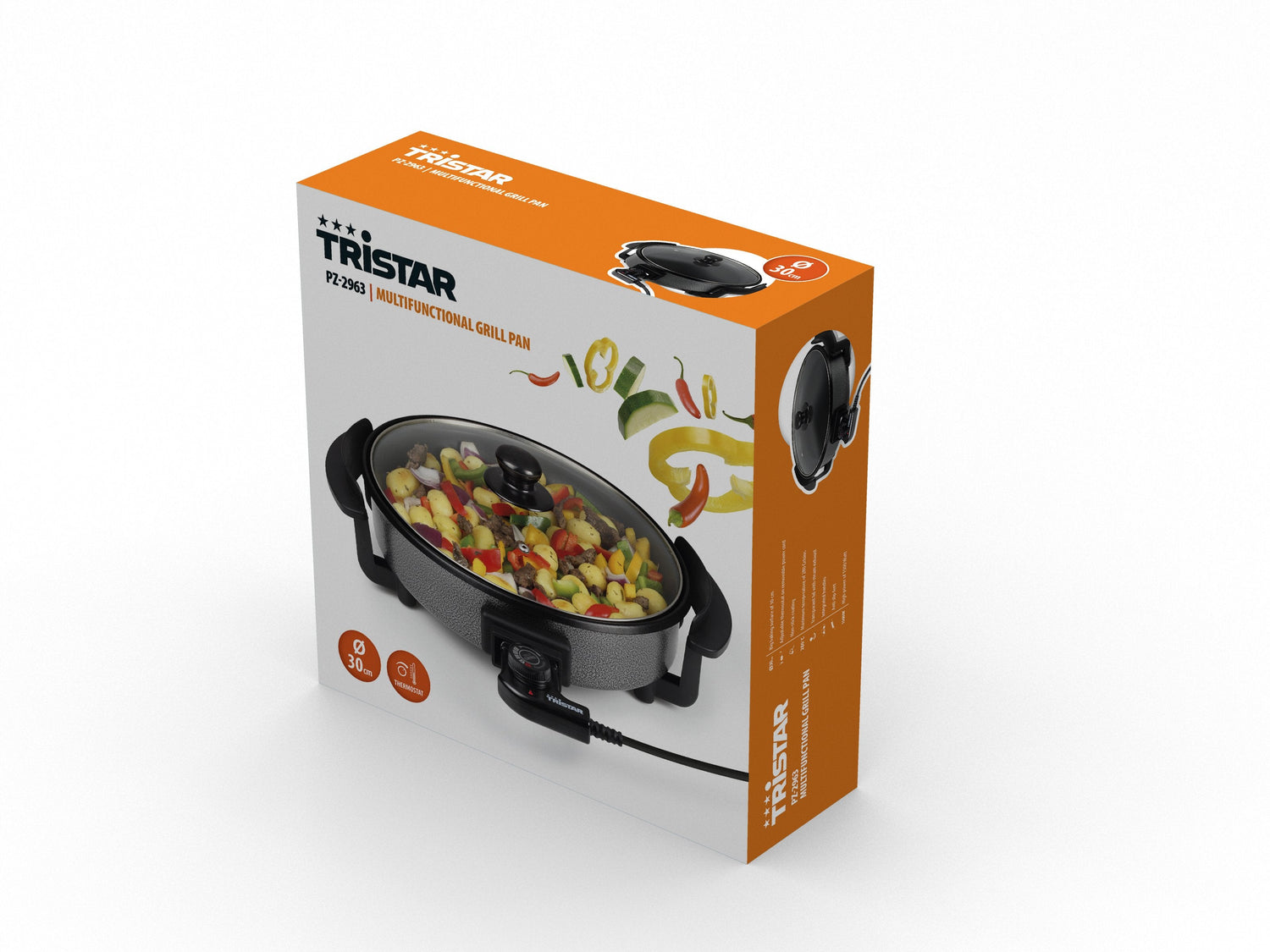Tristar PZ-2963 Paellera Multifunción. Forma: Alrededor, Color del producto: Negro, Tipo de tapa: Tapa desmontable. Potencia: 1500 W. Diámetro: 30 cm, Peso: 2,02 kg. Ancho del paquete: 340 mm, Profundidad del paquete: 340 mm, Altura del paquete: 110 mm. Cantidad por palé: 72 pieza(s)