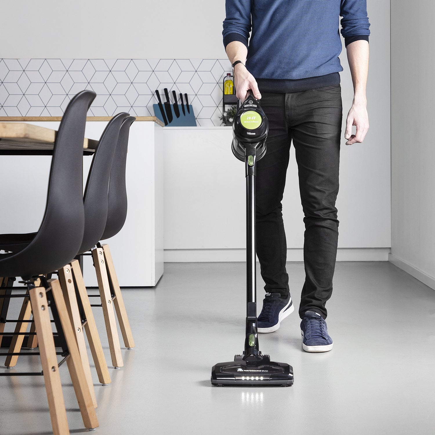 Aspirador sin cables de fácil uso con motor sin escobilla BLDC de alta potencia. Su potente batería de ion de litio y 29,6 V permiten aspirar más tiempo. Incluye cepillo motorizado que limpia todo tipo de suelos.