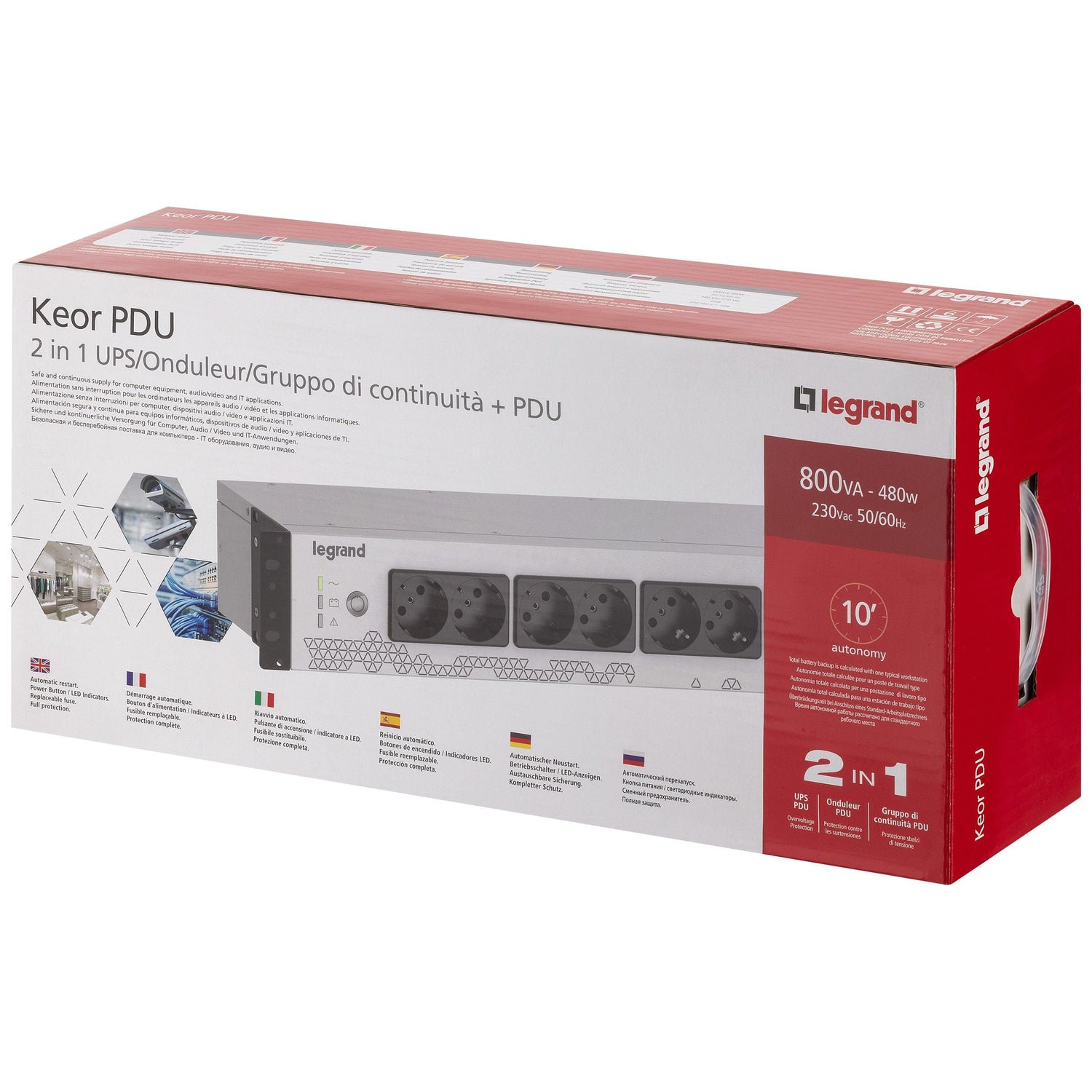 Legrand Keor UPS PDU 800VA FR INPUT 8 FR OUTPUT sistema de alimentación ininterrumpida (UPS) En espera (Fuera de línea) o Standby (Offline) 0,8 kVA 480 W 8 salidas AC
