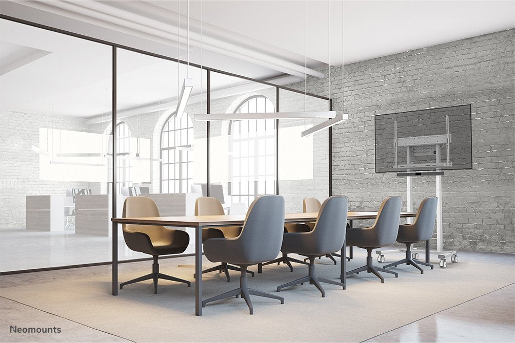 El Neomounts AV2-500WH es un kit de barra de vídeo universal para pantallas con un tamaño mínimo de 43" y un patrón de agujeros VESA que va de 200x200 a 800x600 mm. El kit es muy robusto, estable y versátil, tiene una capacidad de peso máxima de 10 kg y puede instalarse encima o debajo de la pantalla. Para una máxima adaptabilidad, tanto el soporte de la barra de vídeo como los soportes de la placa posterior pueden ajustarse en altura de forma independiente.