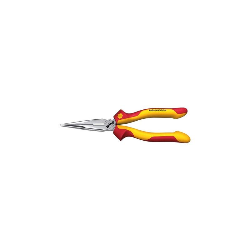 Wiha Alicates De Punta Fina Professional Eléctricos, Alicates De Agarre Rojo/Amarillo, Con Cuchillas Laterales, Forma Recta 27423