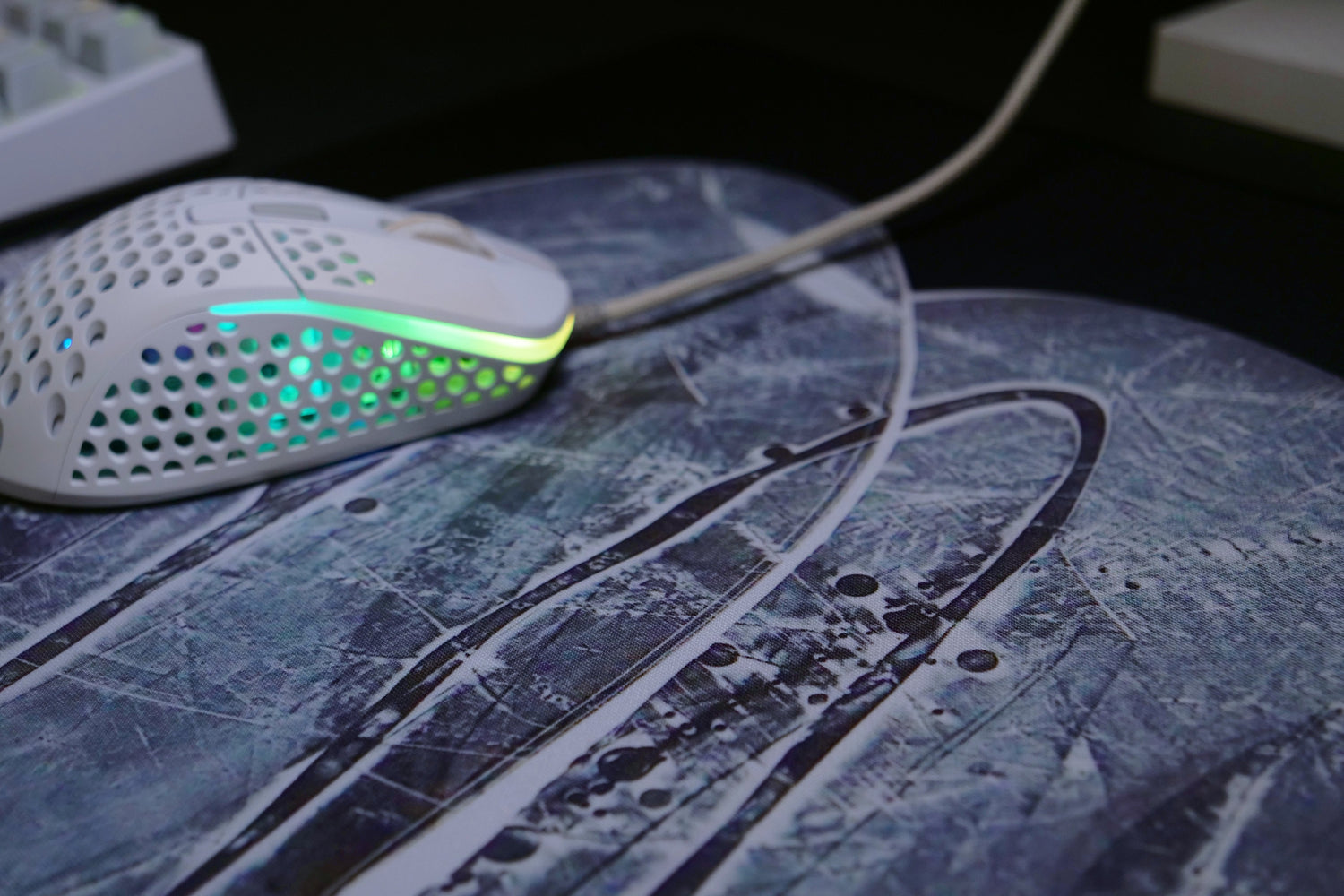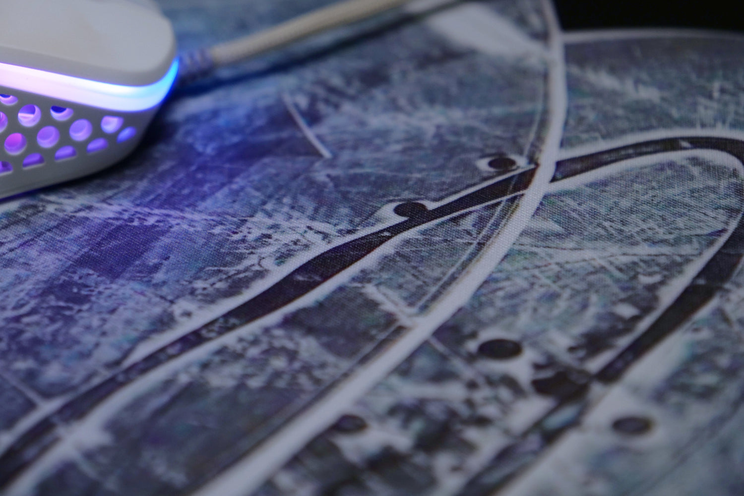 CHERRY XTRFY GP4. Ancho: 460 mm, Profundidad: 400 mm. Color del producto: Negro, Gris, Blanco, Coloración de superficie: Imagen, Material: Tela, Bordes rematados, Base antiderrapante, Alfombrilla de ratón para juegos